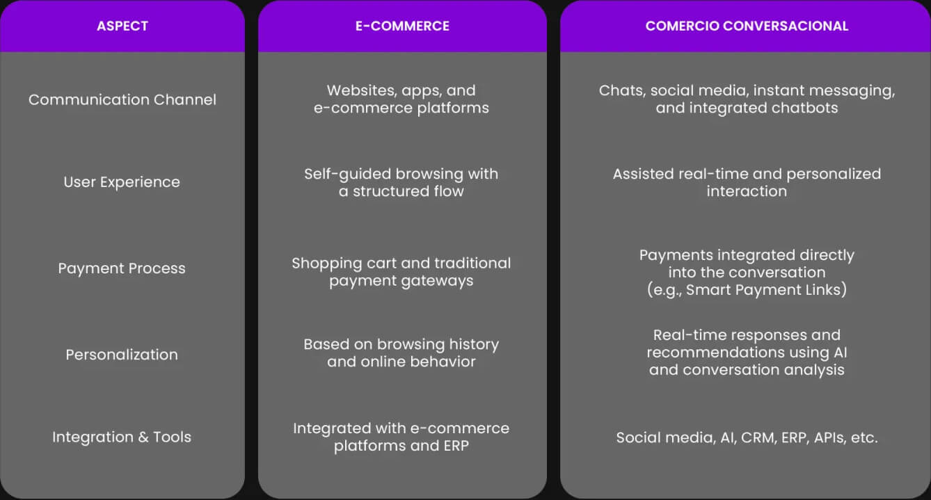 This section focuses on detailing the key differences between E-commerce and Conversational Commerce.