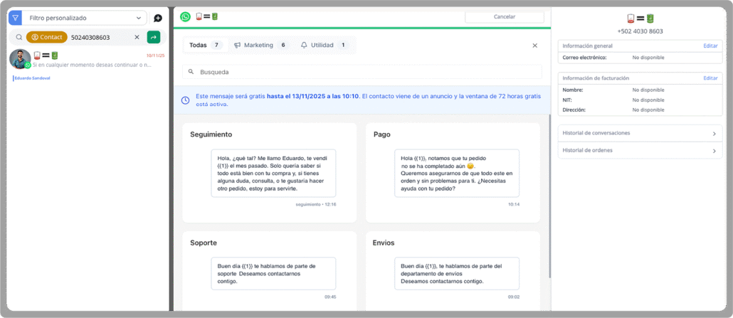 After 72 hours, the rules change. You’ll need to pay for message templates (unless the customer messages you first). But for those first three days? It’s open season for engagement.